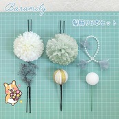 [Baramoly] 髪飾り 9色展開 浴衣 ピンポンマム 成人式 和装小物 卒業式 結婚式 和装 着物 袴 振袖 かすみ草 和玉 YP001 白