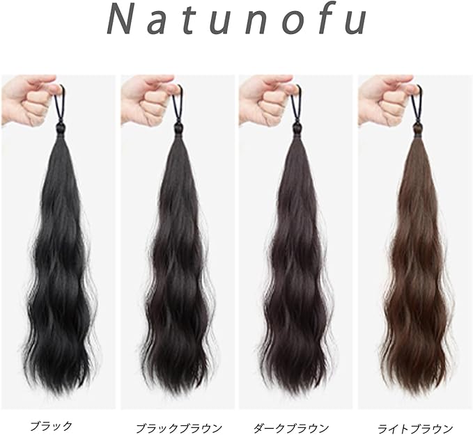 Natunofu つけ毛 エクステ ポニーテールウィッグポニーテールリング ツインテール ウィッグ 子供 つけ毛 エクステ ポニーテール ポニーテール エクステ つけげ 子供 七五三 ウィッグ ツインテール hair extension for women フラダンス ウィッグ ポイントウィッグ シュシュ 50cm 2本セット ゆるふわ 自然 つけ毛 日常 ファッション ビューティー 女性