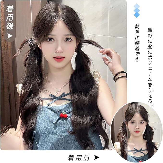 「結ぶだけ簡単」輪ゴム付きで、ヘアーに付け便利、簡単イメチェン!安定感も抜群、一日もしっかり付けている!ポニーテールやツインテールにそのまま付ける、使用方法はとっても簡単で、数秒でヘアアレンジ。