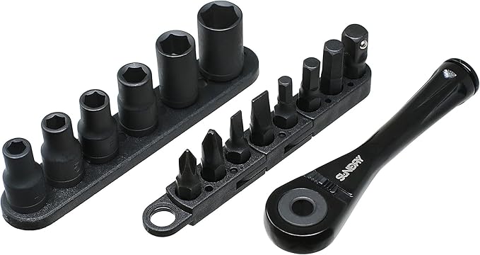 サンドリー(SUNDRY) ミニラチェットセット 差込角6.35mm(1/4inch) ギア数72 送り角度5 ビット7本 ソケット6本 ソケットアダプター1本 SDR-B02
