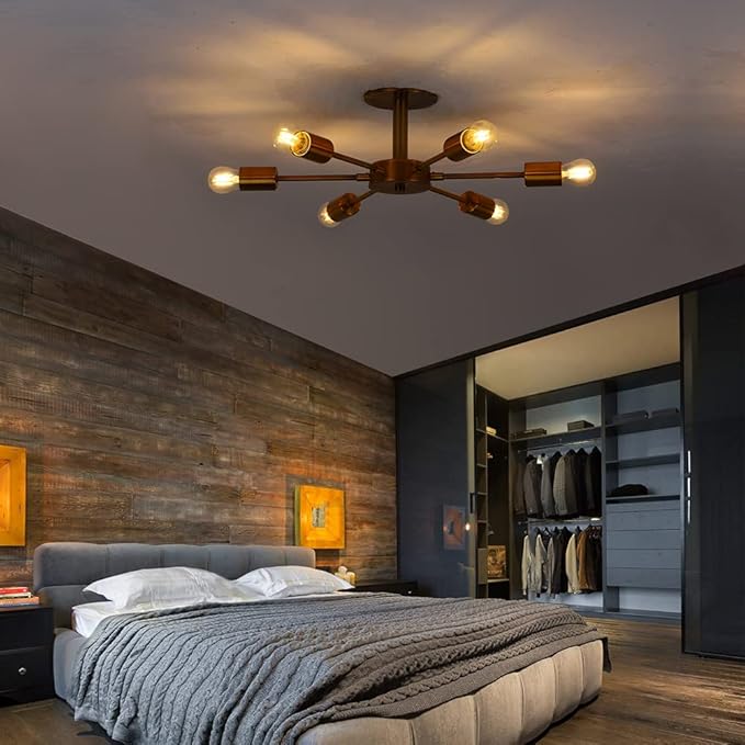 【工業風】ペンダントライト6灯は外観と内側もゴールド銅色で、室内にアンティークな雰囲気を醸し出します。照明としてだけではなくお部屋のインテリアとしても活躍しそうです。天井照明をオシャレなデザイン照明に変えるだけで、お部屋の雰囲気はグッと変わります。さらにスタンドライトなどの補助照明を足すことで「多灯照明」に!一つペンダントライトだけで十分です。
