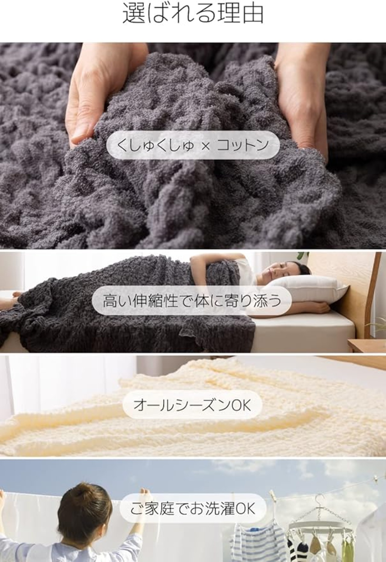 くしゅくしゅした質感とふわっふわのタッチが心地いい【さらっと快適 綿シリーズ くしゅくしゅタオルケット】