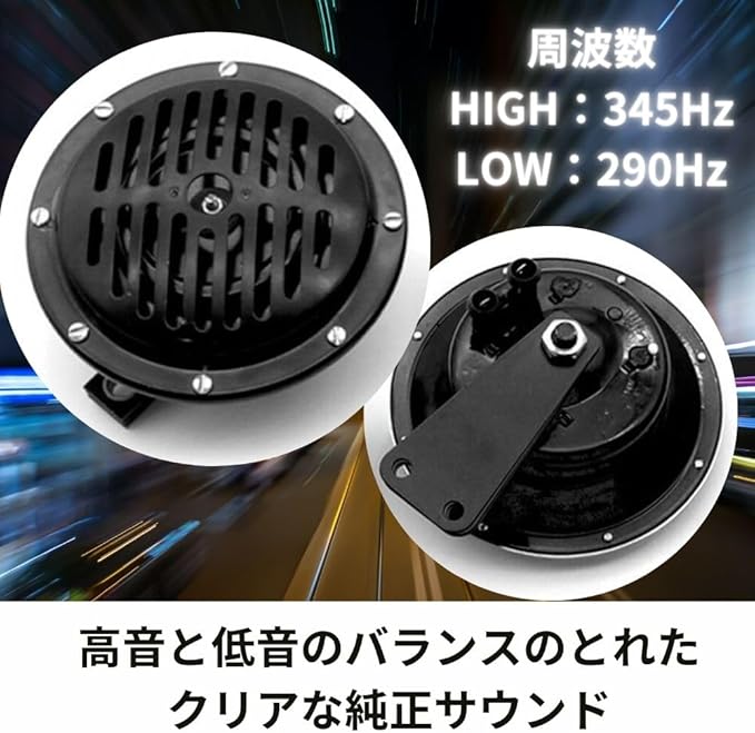 ◆【適合車種】12V車全般 【カラー】 シルバー、ブラック【セット内容】本体2個セット、 取り付けステー付属 【サイズ】直径 約150mm 厚さ約95mm  音の大きさ:115db( 5) 周波数 HIGH:345Hz LOW:290Hz  【注意事項】※取扱説明書、取付用の配線、接続端子は付属していません。※海外製品のため、小傷・擦れ・汚れなどが付いている場合がありますのでご了承下さい。※ネジの色は生産時期により画像の色と異なる場合がございます。 ※お取り付けに関しますサポートは行っておりません。 ※形状、仕様は予告なく変更される場合がございますので、あらかじめご了承ください。 ※いかなる場合においても、取り付け工賃など商品代金以外の保証を致しかねます。※説明にある以上の個別車種への適合可否につきましてはお答えいたしかねます。説明内容をご参考にご判断をお願いいたします。※環境保護、低コストでご提供するためプチプチにくるんで簡易包装にて配送いたします。