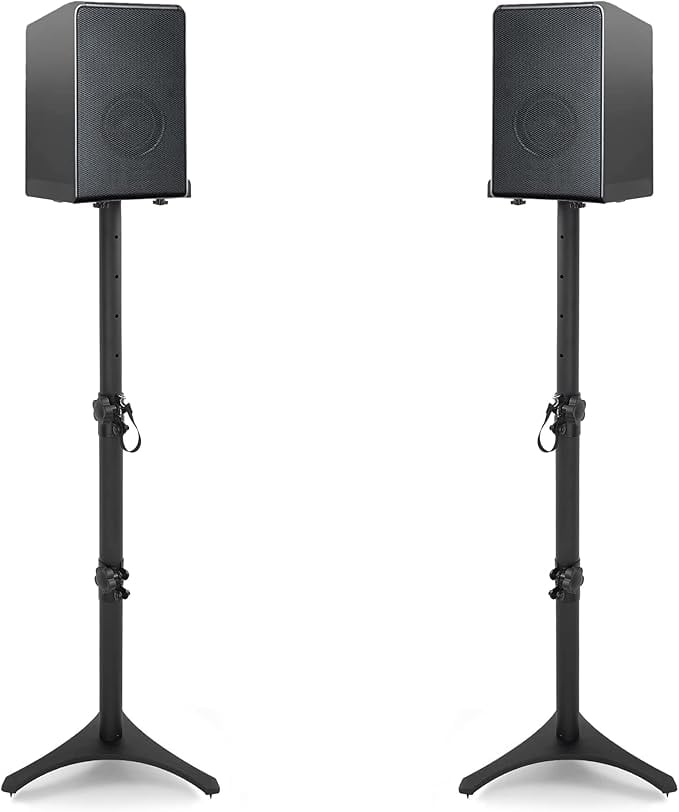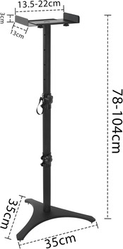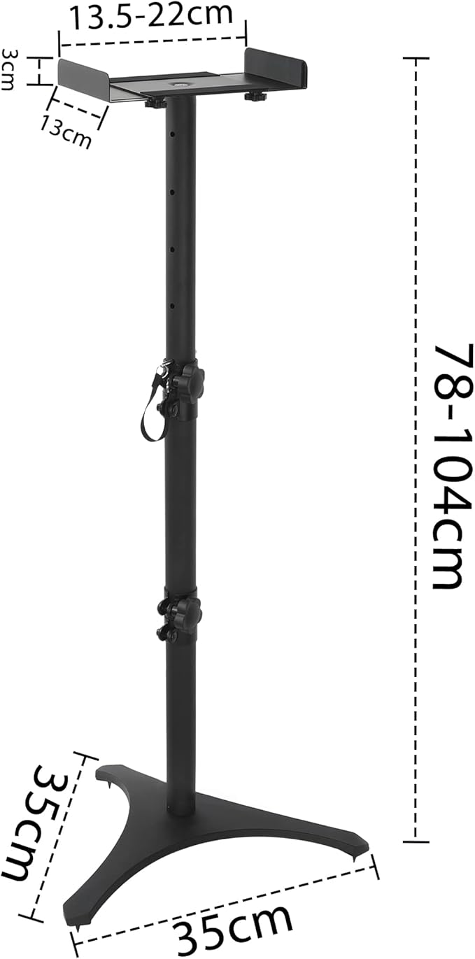 【製品情報】78 cm〜104 cm高さ調整、天板奥行13 cm x幅(13.5〜22)cm、ほぼすべてのスピーカー、材質:金属、荷重能力:15 kg