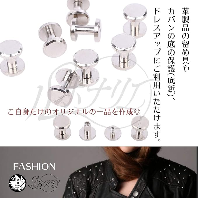 スタッズなどの飾りボタンやリベットとして。ベルトやブレスレット・靴・ブーツ・ハンドバッグ・帽子・ジャケットなどにも。修理や部品交換、レザークラフト製品の作成にも。ご自身だけのオリジナルの一品を作成いただけます。