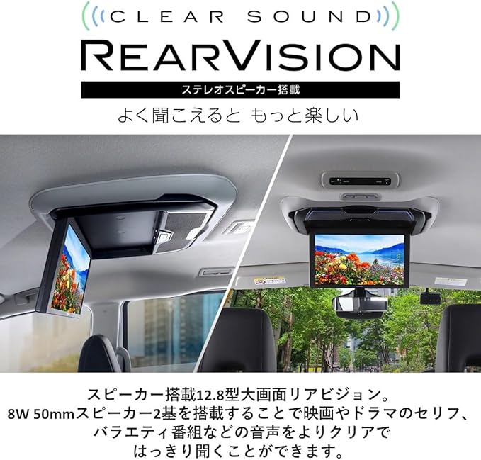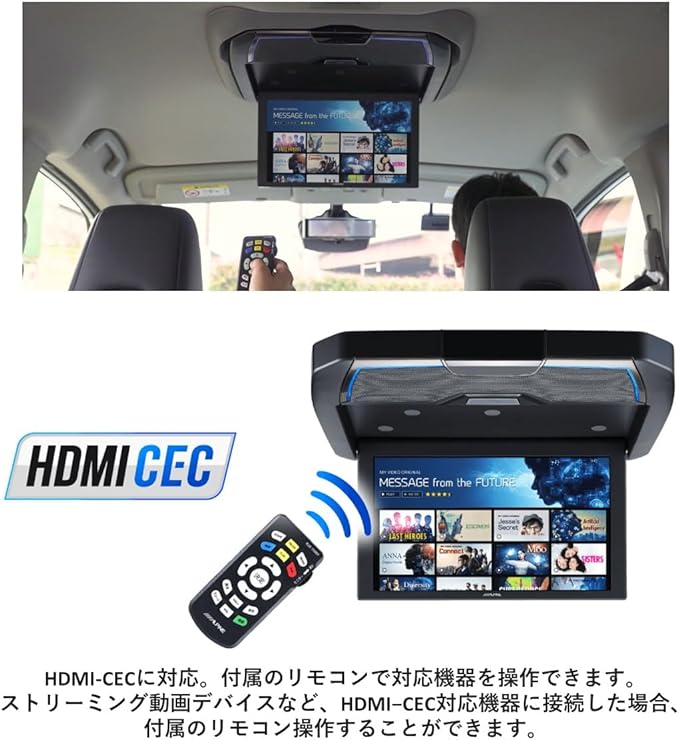 ※車両への装着には別売の車種専用取付けキットが必要です<br> アルパイン初!スピーカー搭載後席モニター「クリアサウンドリアビジョン」<br> 8W 50mmスピーカー2基を搭載することで映画やドラマのセリフ、<br> バラエティ番組などの音声をよりクリアではっきり聞くことができます。<br> リアビジョン用外部HDMI接続ボックス(KCU-610RV-VOD / 別売)を接続することで<br> ストリーミングデバイスやスマートフォンはもちろんDVDプレーヤーなどのHDMI端子付き機器と接続、<br> クリアサウンドリアビジョンにて後席独立での視聴が可能です。<br> HDMI‐CEC 機能にも対応。HDMI デバイスの専用リモコンを持ち込むことなく、<br> 付属のリモコンで快適に操作することができます。<br> 前席で音楽を聴きながら、後席ではWEB動画も楽しめる。<br> 家族それぞれに好きな時間を過ごせます。
