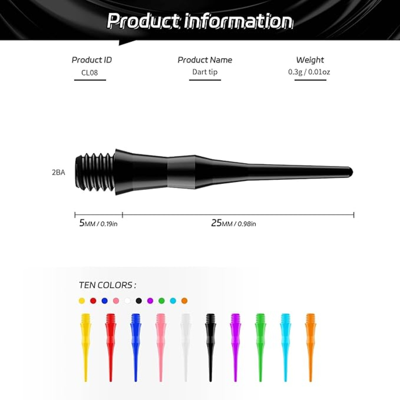 CyeeLifeダーツチッププラスチック、500枚、2 BAライン、特に安定していて、耐久性があり、ダーツの矢印は10色あります (500pcs)