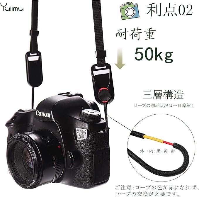 [Yullmu] アルミ合金+3層構造 アンカーリンクス カメラストラップ 三角リング付 耐荷重50kg 着脱簡単 カメラ・双眼鏡に汎用 2枚セット 黒+赤