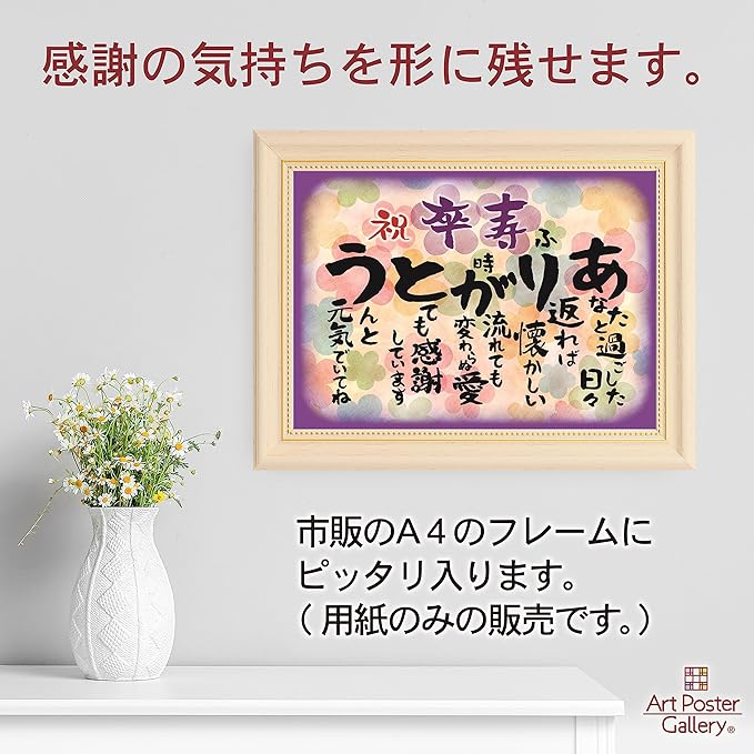 【サイズ】用紙:A4(210ミリ 297ミリ) 市販のA4フレーム(額縁)にぴったり合います。