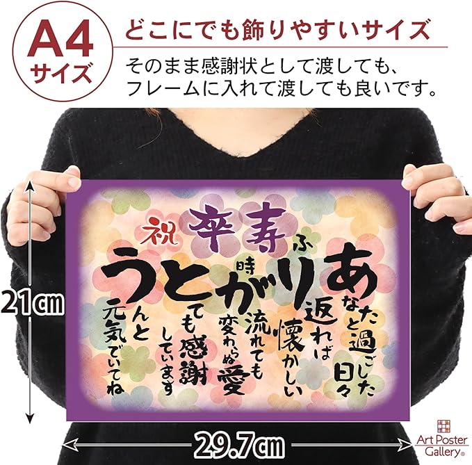 お祝い 誕生日 ありがとう A4サイズ (お父さん お母さん おじいちゃん おばあちゃん 親) メッセージカード ポエム ギフト 感謝状 表彰状 プレゼント 記念日 パーティー (卒寿90歳)