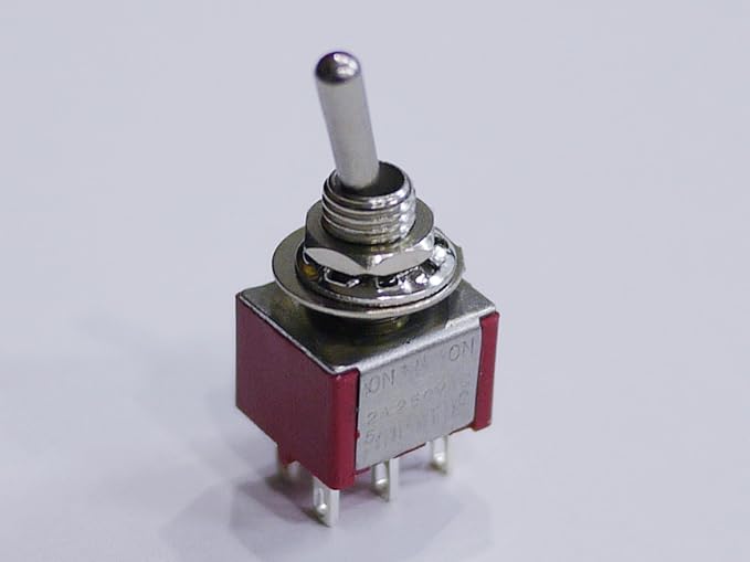 ギター/エフェクター/電子回路用 ミニスイッチ ON-ONタイプ 2回路2接点6ピン レッド(赤色) (1個単品)