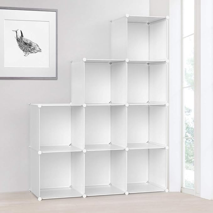 Vacplus 収納棚 大容量 収納ラック 組み立て式 整理棚 収納ボックス 本棚 衣類収納ボックス 多用途 耐久性 省スペース 収納便利 ブラック 1個幅30 奥行30 高30㎝ 9ボックス (ホワイト)