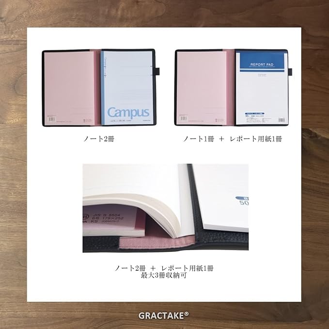 ■3冊収納可:レポート用紙1冊+ノート2冊 ※標準サイズ