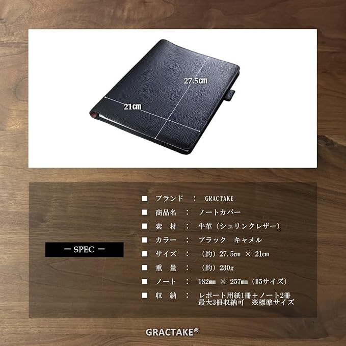 [GRACTAKE] ノートカバー B5 大学ノート レポート用紙 2冊 3冊 革 本革 レザー NC-B5 (ブラック)