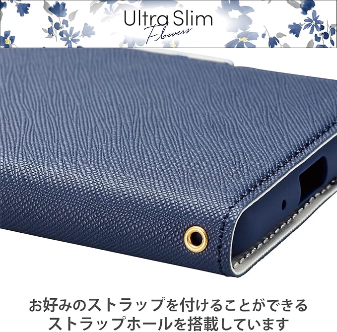 エレコム Galaxy A23 5G [ SC-56C | SCG18 ] ケース カバー 手帳型 薄型 革 マグネット開閉 カードポケット 1枚 UltraSlim Flowersシリーズ [手帳ケースなのに、薄くて軽い] ストラップホール付き 花柄(ケース内側) ネイビー PM-G227PLFUJNV