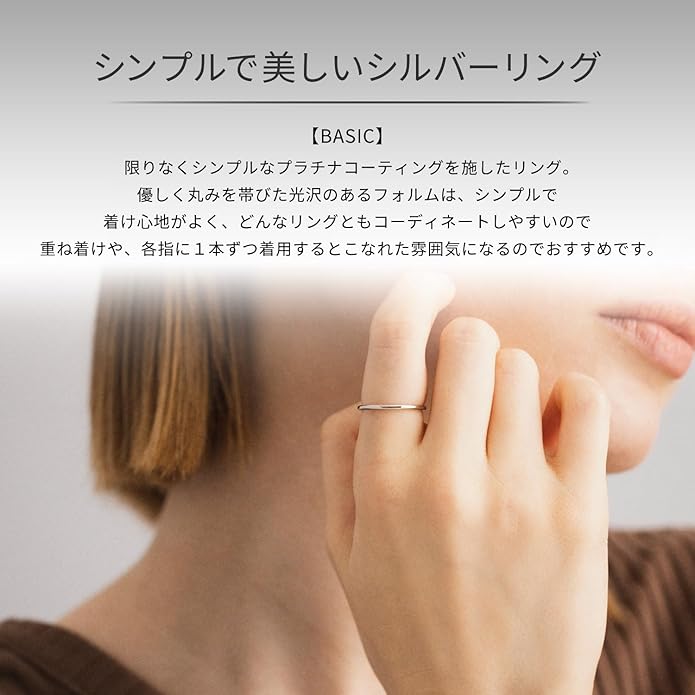 【BASIC】限りなくシンプルなプラチナコーティングを施したリング。優しく丸みを帯びた光沢のあるフォルムは、シンプルで着け心地がよく、どんなリングともコーディネートしやすいです。重ね着けや、各指に1本ずつ着用するとこなれた雰囲気になりおすすめです。※ボリューム(幅)のあるリングは、通常より着用時にサイズが小さく感じる場合がございます。*サイズ直し:不可