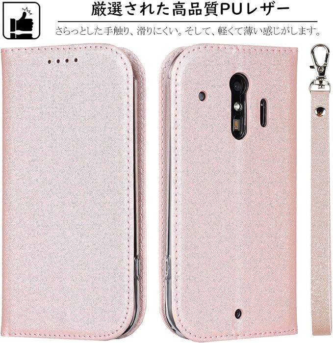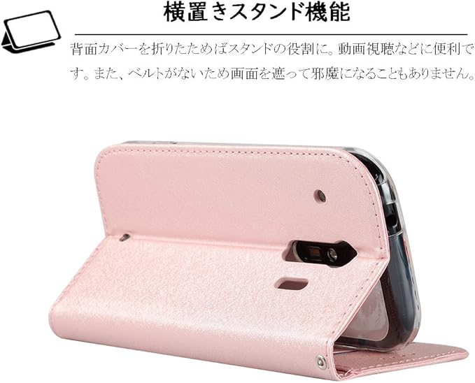 Elick らくらくスマートフォン F-42A らくらくスマートフォン me F-01L ケース 手帳型 薄型 高級PUレザー らくらくスマートフォン F-42A ケース カバー マグネット式 ベルトなし ストラップ付き カード収納 FUJITSU F-42A ケース 手帳型 ローズゴールド