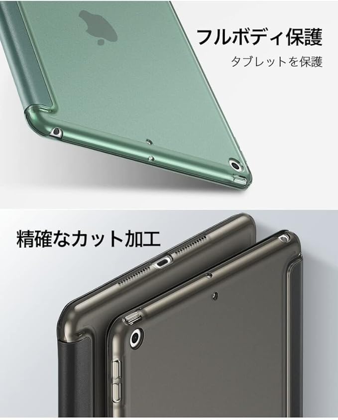 【半透明バックケース】 バックケースは、三つ折りフロントカバーと同じ色合いの半透明色で、リンゴのロゴマークのリンゴがうっすらと透けて見えます。 半透明のバックケースには強度のあるポリカーボネート素材を使用しており、傷や指紋が付きにくい特別な処理が施されています。