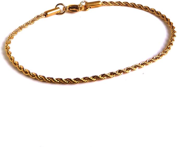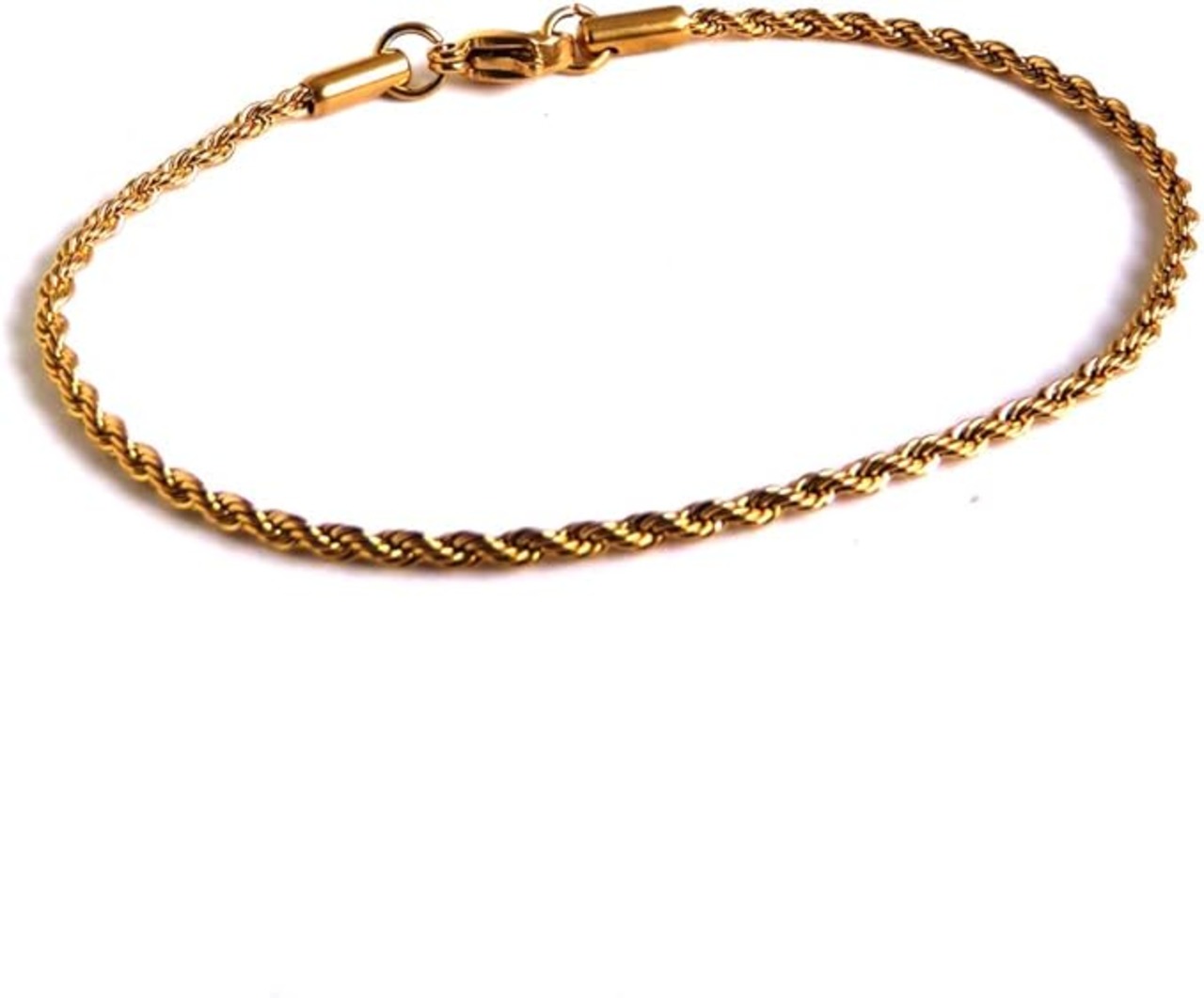 普段使いに最適なシンプルロープチェーンアンクレット。メンズにもレディースにも人気の高いデザインでどなたにでもおすすめできるシンプルなユニセックスチェーンアンクレット! ツイストされたチェーンでそのままでもお持ちのアンクレットと重ねづけしてもしっかりデザイン性のあるチェーンです。 フォーマルスタイルにもカジュアルスタイルにも相性がよく、シーンを選ばずどんな時でも着用OK! カラーバリエーションはゴールドとシルバーの2色展開で太さは2mm、長さも各種取り揃えてあり、自分の好みにあったサイズを選択可能。 自分の足首周りの長さにプラス1cmのチェーンの長さをおすすめします。きれいな輝きで存在感を強調しオシャレにコーディネートすることができます。 若者に人気の韓国系ストリートファッションとの相性抜群で、これは外せない1つは必ず持っておきたいアンクレット!BTSのブイ テテ ジミン 登坂広臣などのファンにはたまらないとてもかっこいいチェーンアンクレット!