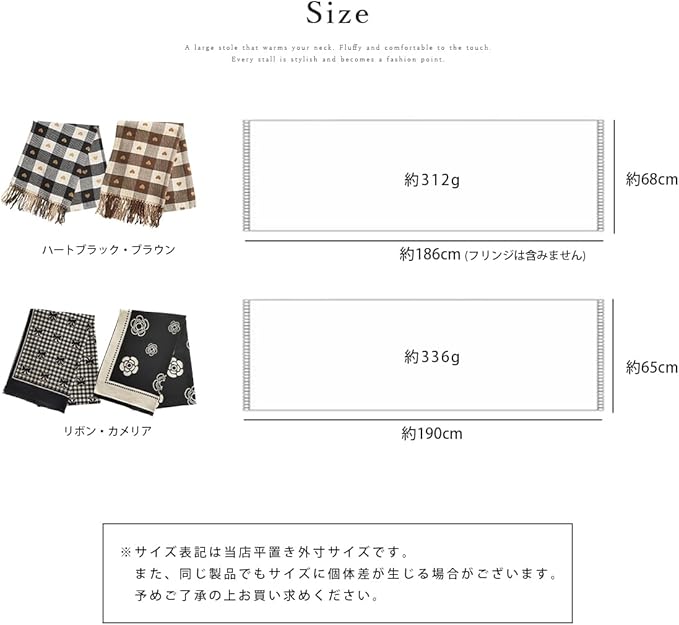 ※ハートとカメリア・リボンではサイズが異なります。 またニット素材の為、同色でもサイズに個体差がある場合がございます。予めご了承の上お買い求めください。