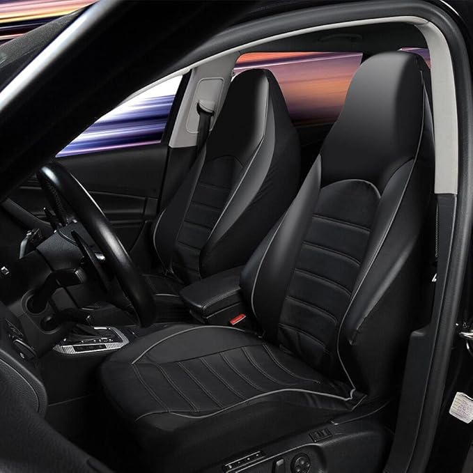 カーシートカバー 前席 汎用 普通車 防水 運転席 助手席 レザー 合成皮革 エプロンタイプ フロント (グレー)