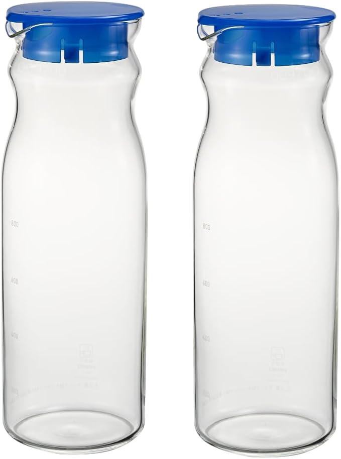 【商品詳細】本体サイズ:幅9.0 奥行9.0 高さ26.6cm、本体重量:約360g、実用容量:1200mL、本体材質:本体/耐熱ガラス、日本製、2本セット