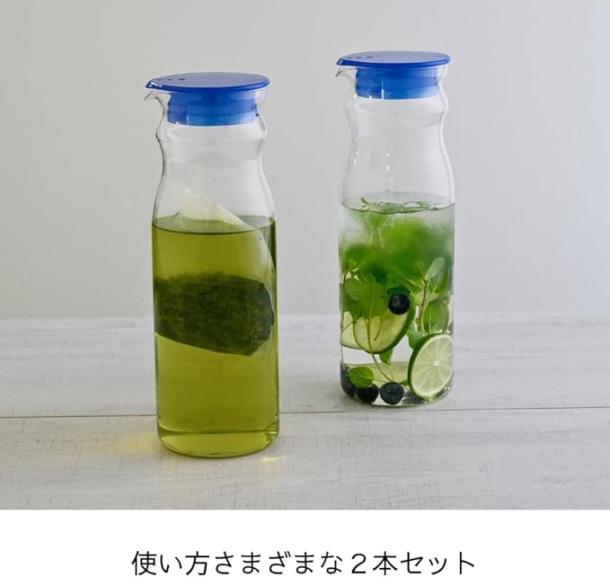 HARIO(ハリオ) 耐熱フリーポット マイン 冷水筒 2本セット 実用容量1200ml 透明 ブルー 耐熱ガラス製 熱湯・食洗器OK 麦茶ポット 日本製 FPM-2012-TBU