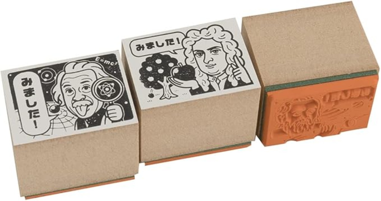 KAIUN-DO 先生スタンプ『世界の物理学者シリーズ「見ました」セット』 ガリレオ・ニュートン・アインシュタイン