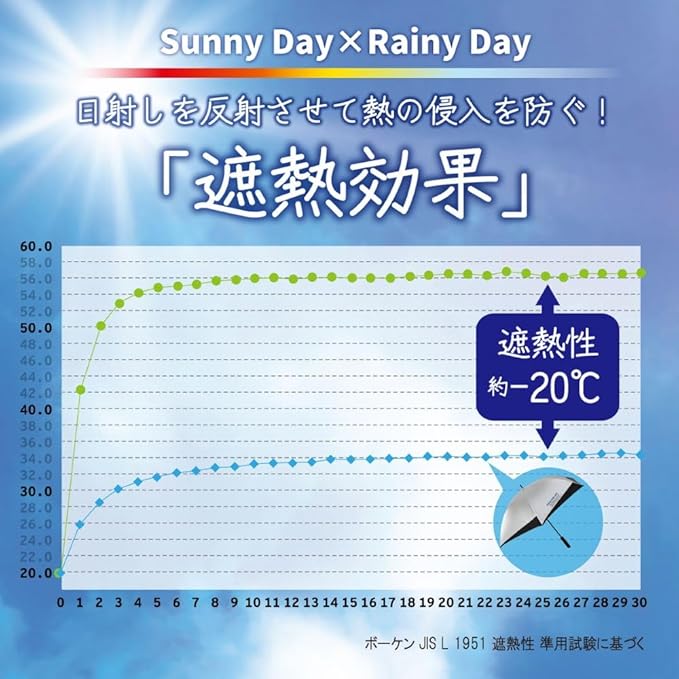 UVカット・遮光率99%以上、UPF50+でしっかりと暑い日差しからカバーできる長傘