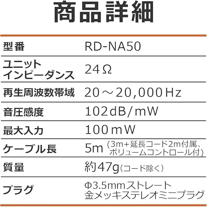 コード長:約3.0m(ボリュームコントロール付)