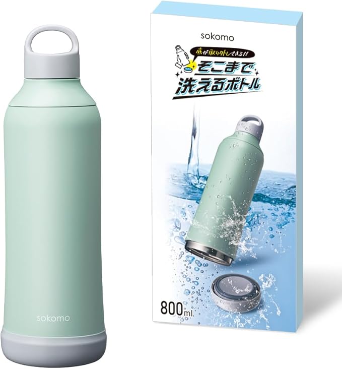 そこまで洗えるボトル。Sokomo(ソコモ)。底が取り外し可能、中までしっかり洗えて衛生的に使えます。底が開くので氷などが入れやすい。