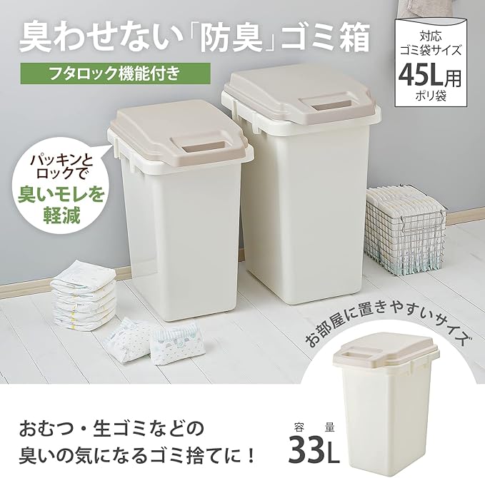 リス ゴミ箱 防臭ペール ワンハンドパッキンペール 33JS ベージュ 33L H&H 日本製