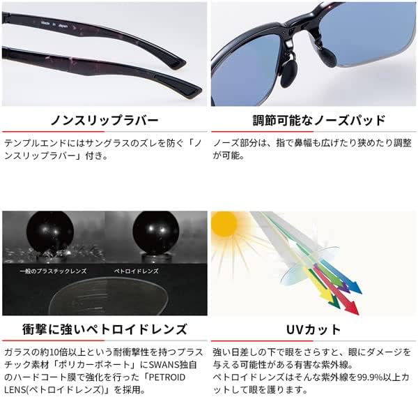 SWANS スワンズ サングラス 日本正規品 ER1-0168 MBK er-1(イーアールワン) ULTRA for FISHINGモデル #ER-1 #ブラック系 #釣り・フィッシング #運転・ドライブ #偏光 #ULTRA for FISHING アウトドアから普段使いまでシーンを選ばず使えるタウンユースモデル。 フレーム上部が太めのスクエアタイプ、どんなシーンでも使えるスタイリッシュなデザインです。 フレームカラー:ブラック デミスモーク レンズカラー:偏光ULTRAライトグリーン(両面マルチコート) フィッシング用に開発されたこのカラーは、「ULTRA LENS(ウルトラレンズ)」の高視認性の効果と 「偏光レンズ」の偏光機能との相乗効果で、今までのレンズよりも更に水中の魚影や地形がはっきりと見えるようになりました。 日本の水質に多い薄緑系の水面でもルアー等の疑似餌の色のコントラストをはっきりと見せる効果があります。 可視光線透過率:26 Percent(偏光度 : 90 Percent以上) 紫外線透過率:0.1 Percent以下(UVカット99.9 Percent以上) サイズ:高さ46mm / 横幅141mm(男女兼用サイズ) 重さ:25g レンズカーブ:6カーブ フレーム機能:ノーズ調節可能 素材:フレーム : ナイロン レンズ : ポリカーボネート 付属品 セミハードケース、取扱説明書 生産国 日本製