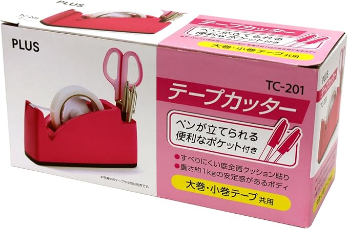 プラス テープカッター ペン立てポケット付き TC-201 ピンク 31-241