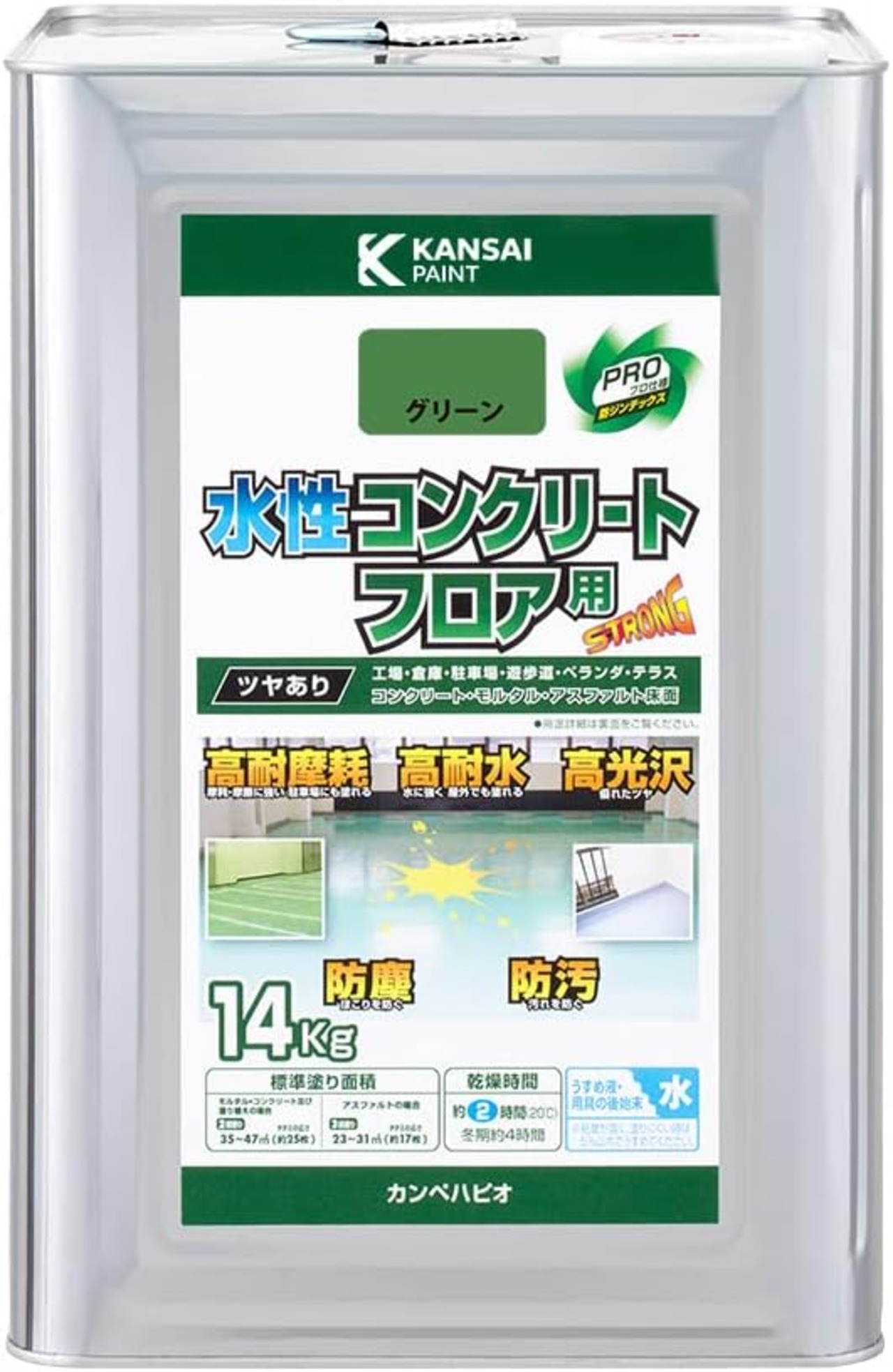 カンペハピオ ペンキ 塗料 水性 つやあり 床用 耐摩耗性 高耐水 高光沢 防塵 防汚 水性コンクリートフロア用 グリーン 14K 日本製 00467654113140