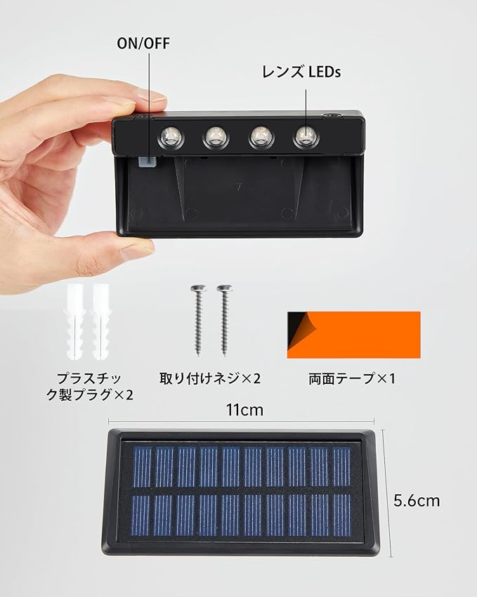 【高効率ソーラーパネル&簡単設置】当社の階段ソーラーライト 屋外自慢の22%変換効率を誇る多結晶シリコンソーラーパネルを採用。曇りの日でも安定した充電を実現します。専用金具&超強力両面テープ付属で工事不要、たった3分で設置完了!また、太陽エネルギーを最大限に活用するために、直射日光の当たる場所にできるだけ置いてください。