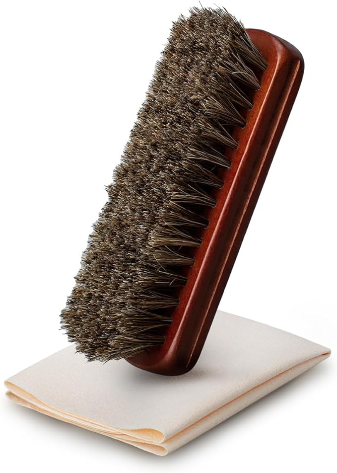 KOME 靴ブラシ シューケア ブラシ 革靴用 ハンディーホース シューケア ホコリ落とし 馬毛製 靴磨き・レザーケア 靴磨きクロス付き