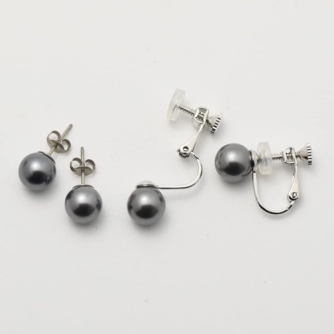 【ネックレス・アジャスター】貝パール8mm珠(パールエッセンス・天然貝核)・留具 真鍮 板バネ差込式・ネックレス約42cm 、アジャスター約6cm 【ピアス】貝パール8mm珠 真鍮ねじばね式 ※日本製