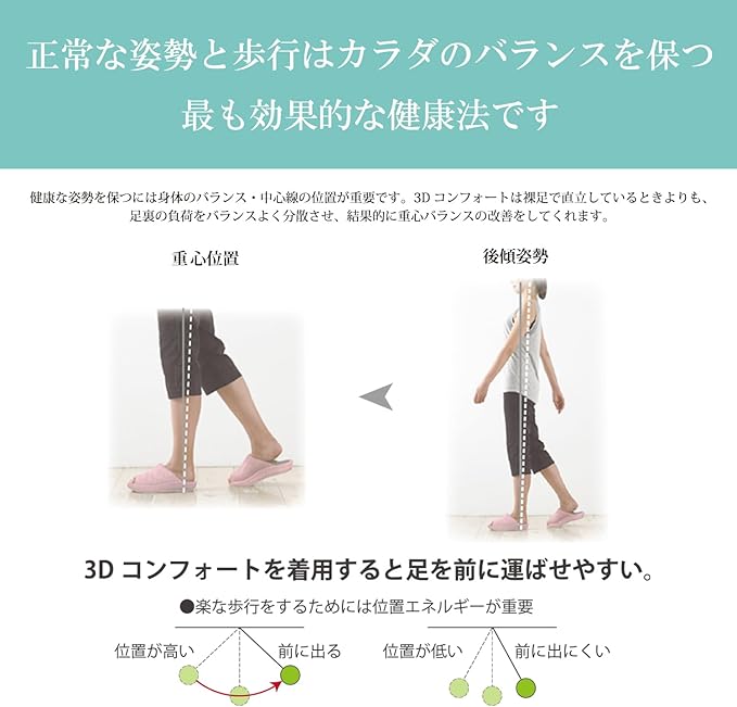 若干の後方姿勢による重心バランスを保ちながら、安定した快適な歩行をサポート
