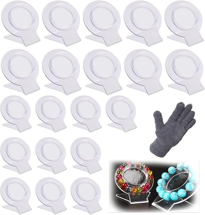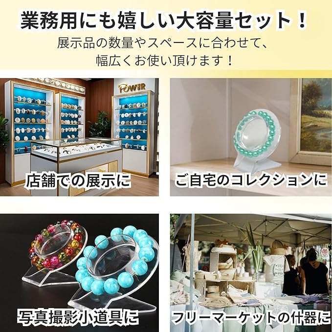 bath&bath ブレススタンド アクリル ブレスレット パワーストーン 収納 陳列 展示 (L M各10個 掃除用グローブ1枚)