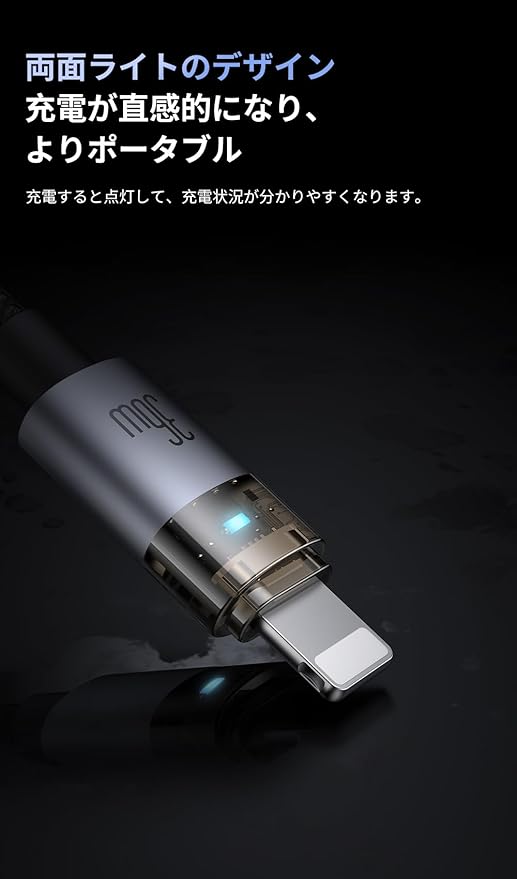 【30分ぐらいに充電済み60%、iPhoneを高速充電】:PD対応の急速充電器を組み合わせて、iPhone 14~8シリーズ高速充電を提供できます。PD急速充電:iPhone 14~8シリーズ/iPadを対応。普通充電:iPhone 7~5シリーズ、AirPods、iPod、iTouchを対応。※上記のテストデータはMcdodo実験室からの情報です。【両面ライトのデザイン】:充電が直感的になり、よりポータブルです。充電すると点灯して、充電状況が分かりやすくなります。