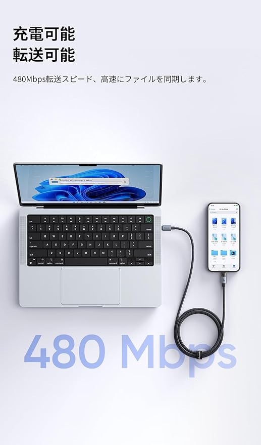 【CarPlay対応、外出がスマート化、安心ドライブ】:音楽/音声/ナビゲーション/通話/充電などをシームレスに接続し、旅がもっと楽しくなります。【充電可能、転送可能】:480Mbps転送スピード、高速にファイルを同期します。【高品質な工芸、お洒落とと耐久性を両立】:太い錫メッキ銅芯線を使用し、干渉に耐える二重層シールドによって、安全な充電、高速かつ安定した充電を実現しました。アルミ合金シェルが、防錆・酸化防止・優れた放熱性を持ちます。SR強化された構造を採用しており、10000+回の曲げテストを耐えます。精密なナイロン編みケーブル本体は、柔軟性と耐引張性が強いです。