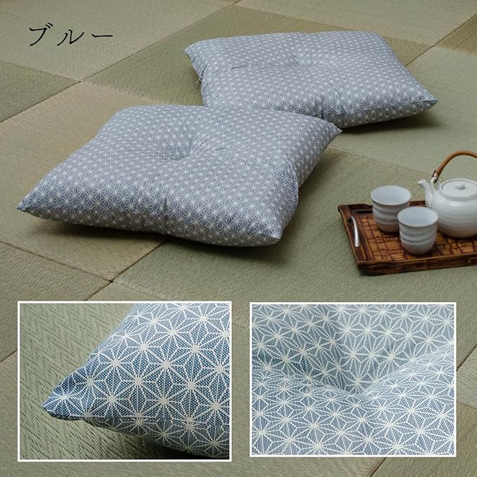 イケヒコ 座布団 銘仙判 日本製 錦 ブルー 約55 59cm 2枚組 #3565720