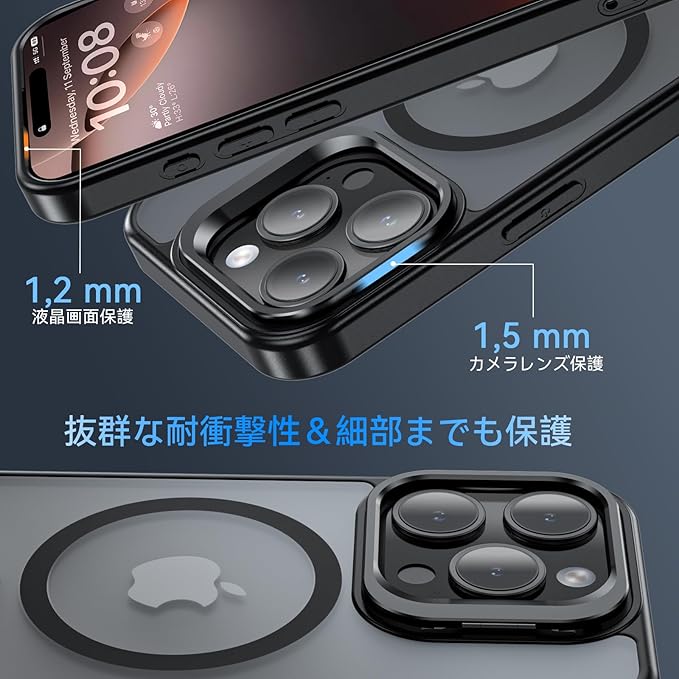 【抜群な耐衝撃性&細部までも保護】厳選されたPCとTPU素材を採用し、一般的な素材よりもさらに耐黄、耐熱、耐スクラッチ、超高い実用性と耐久性で輝き続ける アイフォン16プロマックス ケース です。また、カメラレンズより1.5mm、画面より1.2mm高い保護設計を採用し、スマホのレンズと画面が地面に接触しないようにし、うっかり落としても衝撃を吸収し、角までしっかり保護でき、超耐衝撃性の全面保護型の いphone16 pro max ケース です。