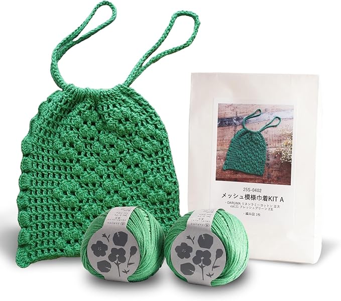 コトノハ メッシュ模様巾着 グリーン 編み図付き ダルマ 25S-0402 (グリーン)