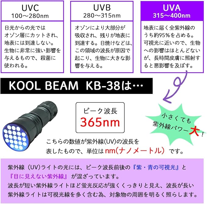 【KOOL BEAM KB-38 UV-LED 紫外線ライト 365nm】