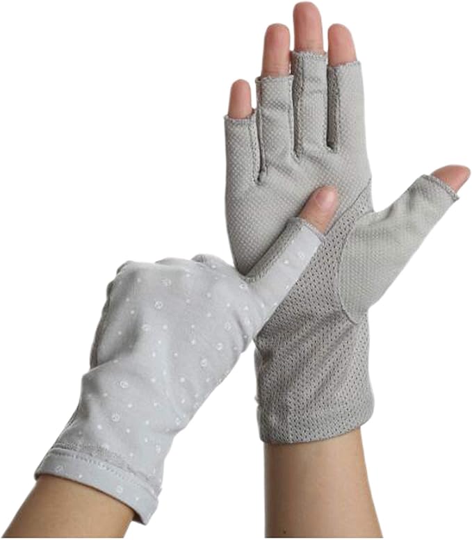 [ふく福] レディース 指なし 手袋 レディース ショート グローブ 綿 スマホ手袋 UVカット 日焼け止め手袋 紫外線対策 薄型 伸縮性 滑止め付 女性 運転 自転車 通勤 通学 アウトドア ドライビング用 春夏