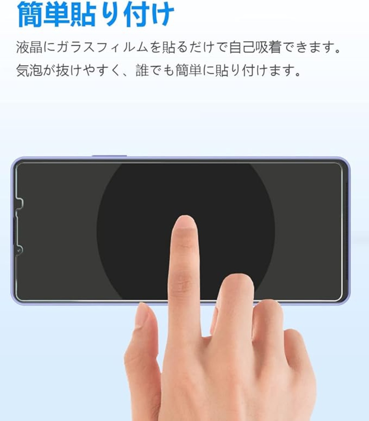 ☀簡単貼り付け 指紋防止:良質なAB接着剤を採用します。これは 貼りやすい自己吸着のシリコーン粘着シートです。 液晶にガラスフィルムを貼るだけで自己吸着できます。気泡が抜けやすく、誰でも簡単に貼り付けます。特殊なコーティング加工を施しましたので油や指紋など付いても軽く拭けば汚れはすぐに落ちます。