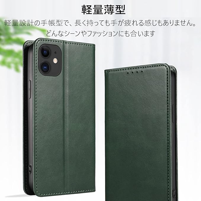 【KWATUNG】スマホケースiphone11手帳型 レザー iphone11ケース手帳型 おしゃれ 軽量 放熱性 iphone 11 手帳型ケース 薄型 マグネット式 iphone 11 ケース 手帳型 カード収納 スタンド機能 アイフォン11 ケース 手帳型 衝撃吸収 落ち着いた色 携帯ケースiphone11【グリーン】