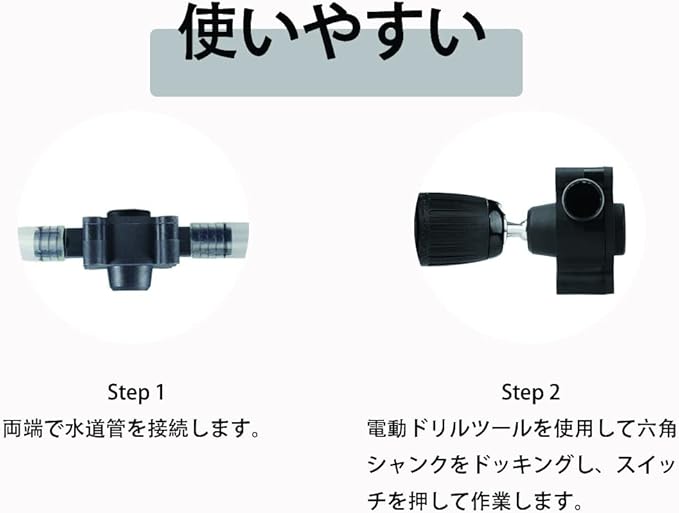 【使いやすい】 六角シャフトドリルビットは、ほとんどのハンドドリルに適しています。 ホースをホースクランプに接続し、ドリルを差し込むだけで作業を開始できます。